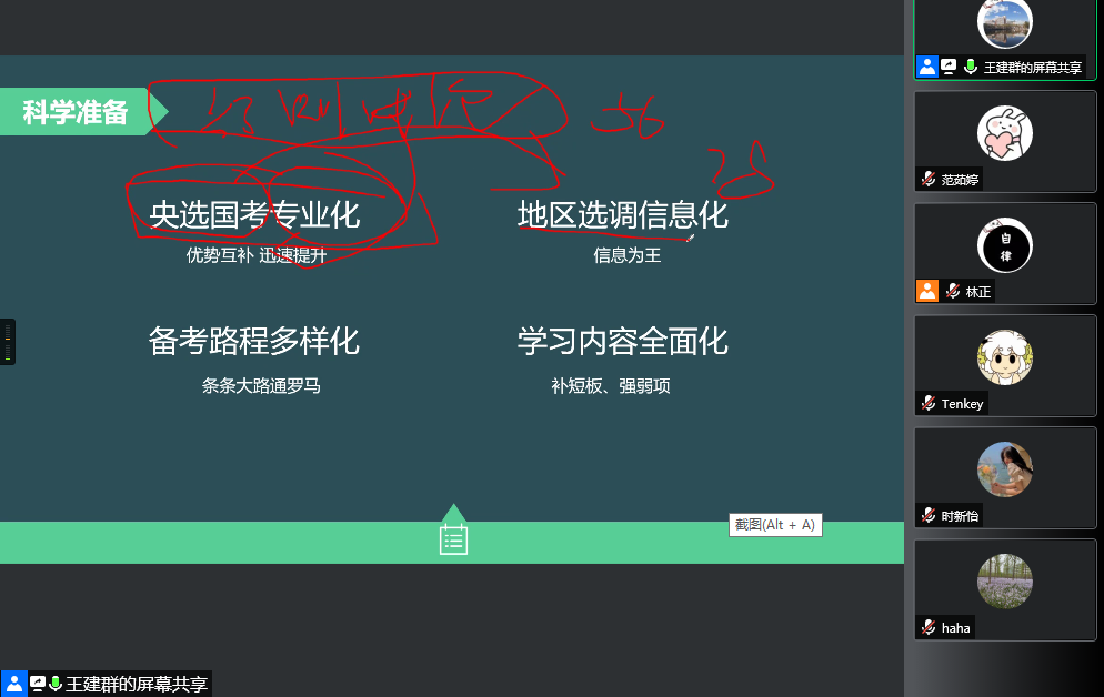 随后,为便于同学们更好地理解各地政策,王建群老师介绍了不同地区的省考、定向选调、普通选调等公职类考试,涵盖天津、河北、浙江、上海、广东、山东、河南、山西、黑龙江等多个地区。此外,老师还分享了详细的备考方法,表示“选择比努力更重要”,提醒同学们提升自己收集信息和筛选信息的能力。