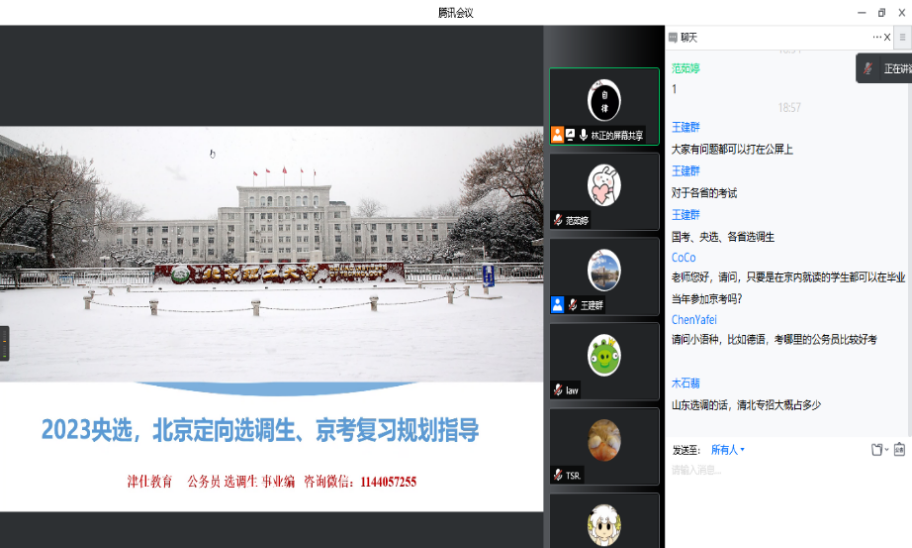为进一步推进我们学生就业工作,帮助在校生准确把握好就业机会,加强同学们对公务员考试的了解,提升备考水平。4月14日,威廉体育williamhill研究生会携手津仕教育举办了公务员备考指导讲座,本次讲座以线上方式展开,津仕教育名师林正、王建群担任主持人。
