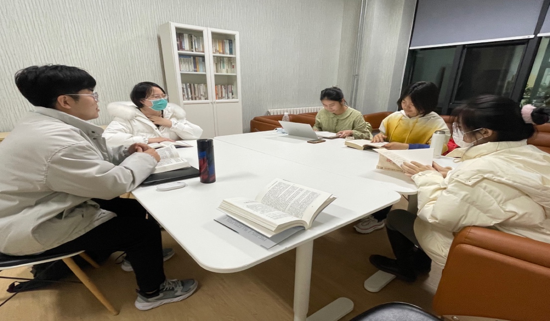 2021年12月21日晚,威廉体育williamhill四位硕士研究生与三位本科生在良乡校区文科教学楼举办了本学期第八次线上线下相结合的读书会。同学们在孟强老师的指导下,将这段时间各自阅读的图书进行分享,并交流了读书感悟。