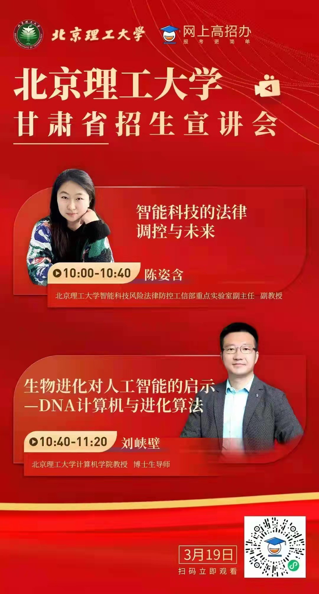 为方便广大甘肃省考生和家长深入了解威廉希尔体育、激发学生的学习兴趣,进一步扩大学校在甘肃省的知名度和影响力,3月19日上午,威廉希尔体育招生办公室与威廉体育williamhill共同举办了威廉希尔体育甘肃省招生宣讲会。威廉希尔体育计算机学院教授刘峡壁、威廉希尔体育智能科技风险法律防控工信部重点实验室副主任陈姿含、甘肃招生组副组长马晓龙参加了宣讲会。
