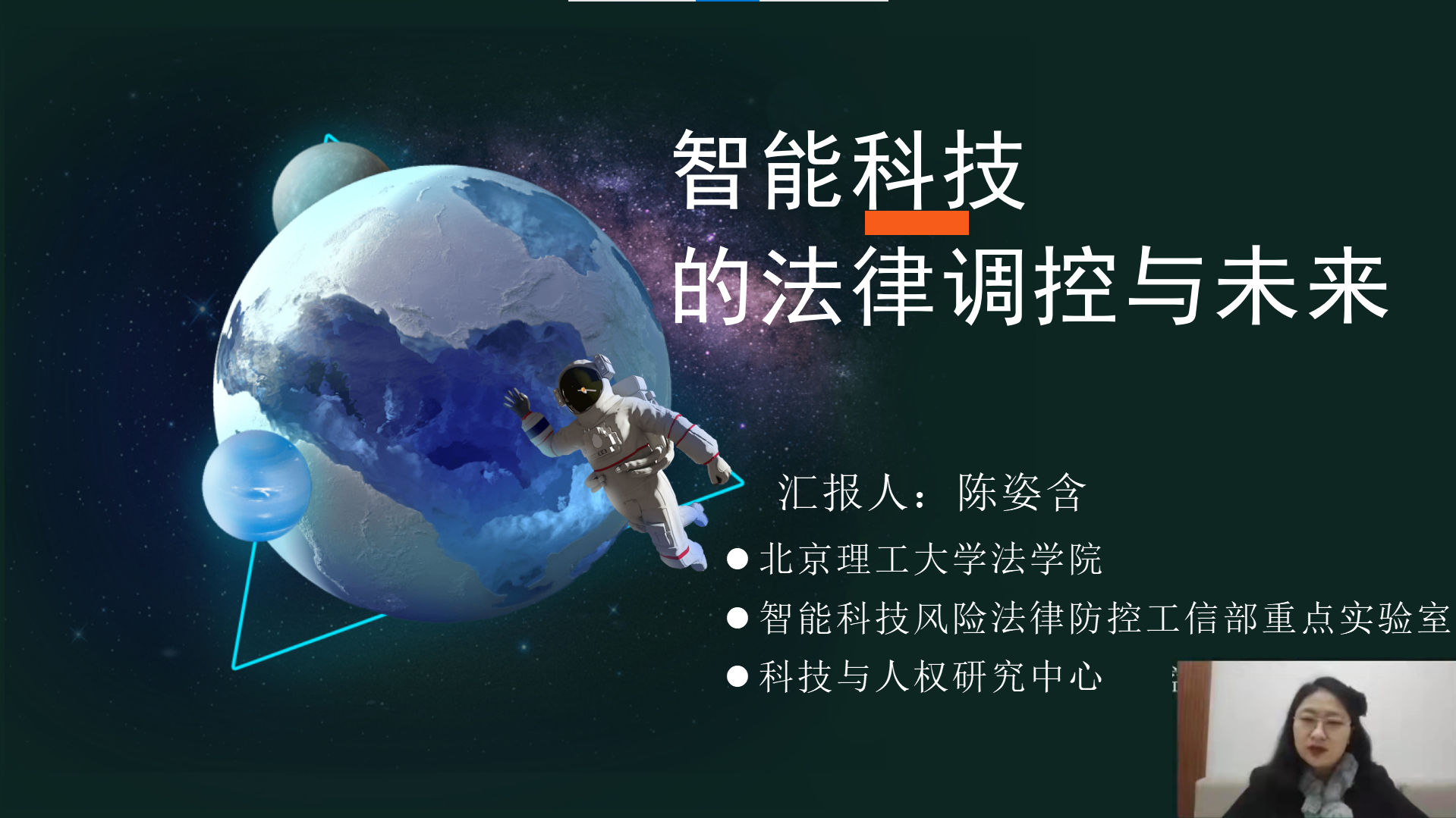 陈姿含首先对参加宣讲会的考生和家长表示热烈的欢迎和诚挚的问候,并做了主题为“智能科技的法律调控与未来”的讲座,讲座内容主要围绕人类安全、伦理秩序、社会公平、社会治理、法律秩序五个方面展开。